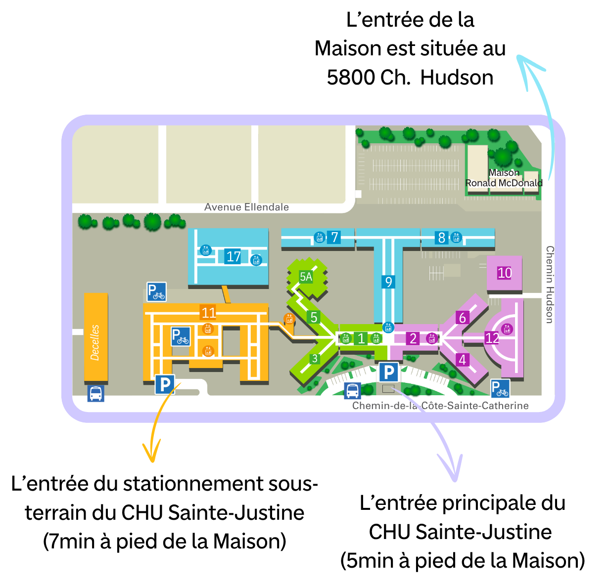 Families may use the Sainte-Justine parking lot even if their appointment is not at the hospital (more details will be provided during registration).